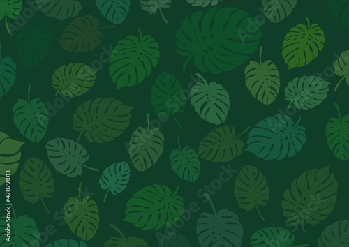 Dark green background with a leaf of a plant called monstera as a base for designing your own works