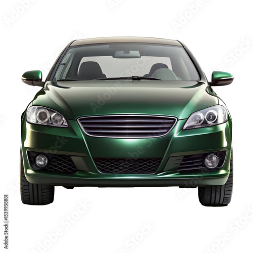 Dark Green Car Front View Isolated on Pure White Background