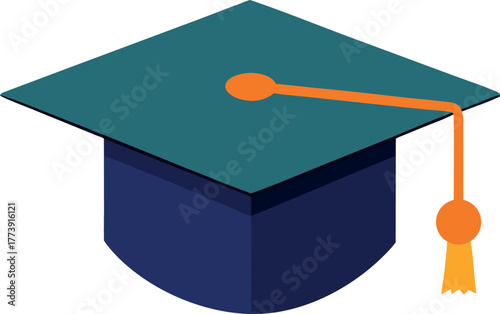 Dark Green Graduation Cap with Orange Tassel and Blue Base Vector Illustration