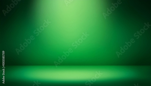 Dark green room background design for showcasing. Abstract green gradient spotlight room texture background. Studio backdrop wallpaper light room wall. Display products, natural shadows. Copy space.