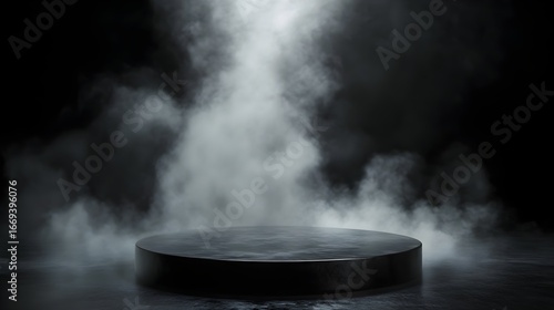 Dark Grey Circular Podium Black Smoky Background platform
