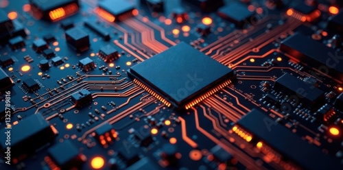Dark metallic circuit board with intricate details, wallpaper, modern, metallic