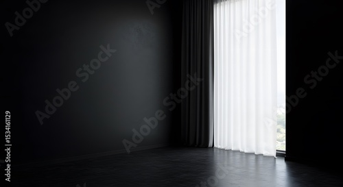 Dark minimal space with a matte black wall, evoking mystery, focus, and isolation in modern design