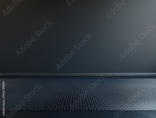 Dark, modern interior with textured floor. Empty space against a dark wall