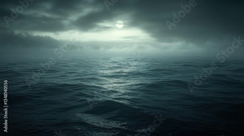 Dark Ocean Waves Night Sky Moon Dramatic Scene