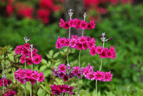 Dark pink Primula pulverulenta 'mealy primrose' in flower