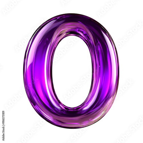 Dark purple Hologram metallic 0 number alphabet Realistic 3D on white background. Generative AI