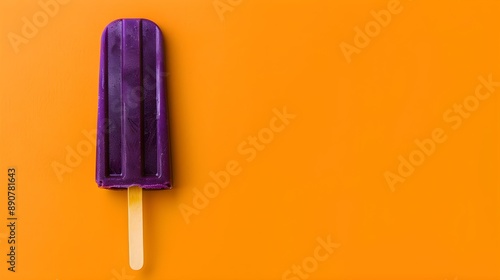 Dark Purple Popsicle on a summery orange Background with Copy Space