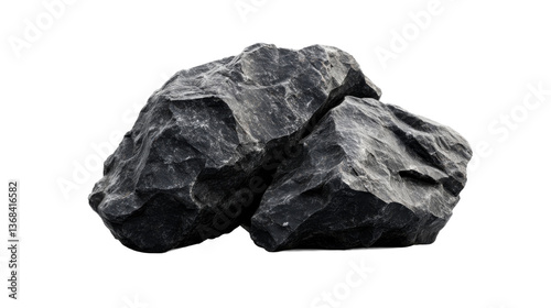 Dark, rocky stone isolated on black background, cut out transparent