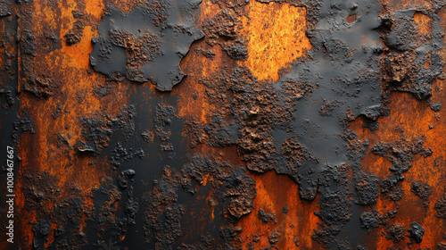 Dark Rusted Metal Surface with Flaking Orange Oxidation Patterns