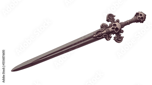Dark steel greatsword with skull-shaped guard, medieval weapon isolated