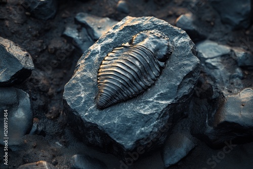 Dark stone with some trilobite fossil in it.