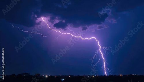 Dark stormy night with dense clouds and lightning flash, thunder,, lightning