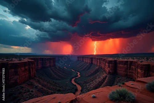 Dark stormy sky with rain falling in Red Rock Canyon, wildfires, dusk, parkland