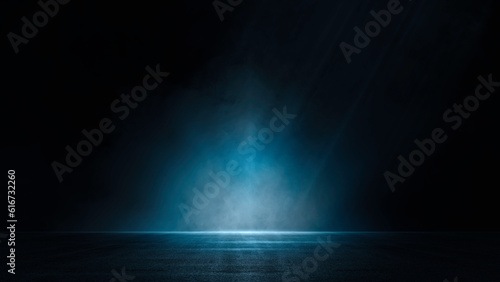 Dark street, asphalt abstract dark blue background, empty open dark scene neon light, spotlights The concrete floor and studio room with faint smoke float up the interior texture for display products