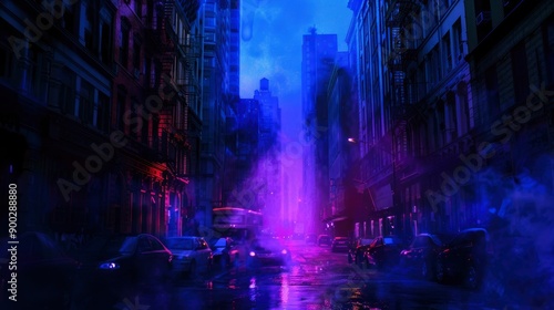Dark street, night smog and smoke neon light. Dark background of the night city, ray of light in the dark. Gloomy dark background - generative ai