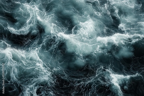 Dark teal ocean waves crash intensely. Perfect for backgrounds, website headers, or moody designs.