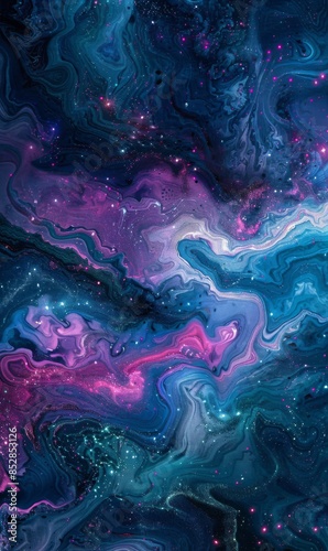 Dark teal, purple, and pink swirling pattern with a cosmic, galactic feel