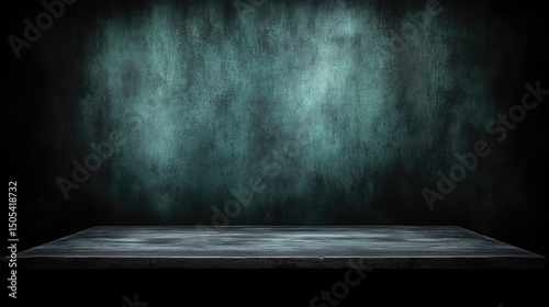 Dark teal textured wall backdrop with a smooth, dark wooden table.