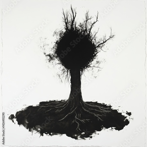 Dark tree abstract art digital creation surreal environment black and white aesthetic unique perspective
