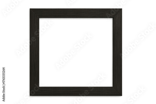 Dark wood picture frame with grain texture, creating a modern empty border template, transparent background