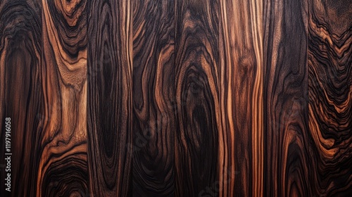 Dark wood with a pronounced grain and deep rich tones