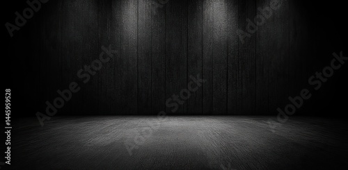 Dark Wooden Wall and Floor with Spotlight, Black Wood Texture Background Empty Room