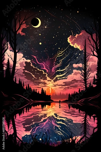 darkest dungeon artstyle of a swirly pastell nebula night