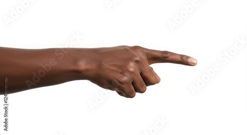 Dark-Skinned Hand Pointing with Index Finger Isolated on White Background