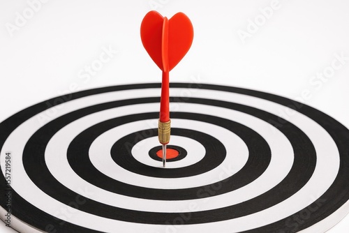 Dart game with arrows hitting the bullseye on a white backdrop
