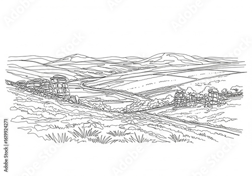 Dartmoor National Park in United Kingdom one line drawing style