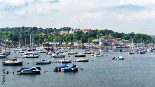 Dartmouth, Devon, United kingdom 25 may, 2018. boats and yachts, colorful houses, hotel on Dart river on summer day