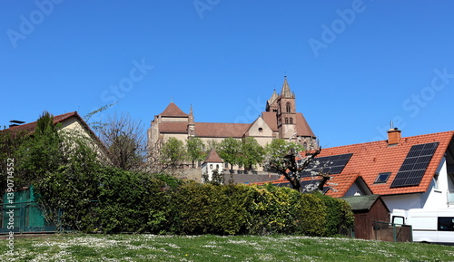 Das Stephansmünster in Breisach hinter Wohnhäusern