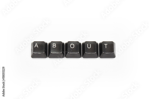 Das Wort "ABOUT" gesetzt mit den schwarzen Tasten einer Computertastatur