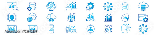 Data analysis, Analytics, Statistics, Big data, Database editable stroke line icons set collection illustration vector
