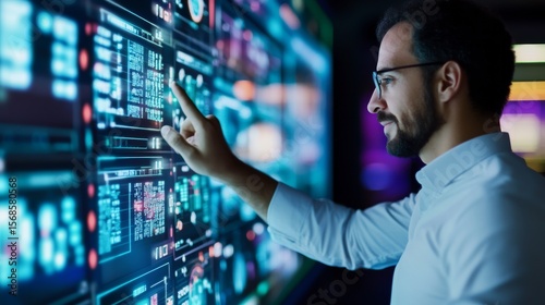 Data Analysis Man Interacting with Interactive Digital Screen, UI ,UX