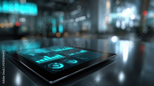 Data analysis tool displaying graphs and stats in a modern office setting