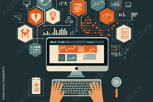 Data Analysis, Website Design & Development Modern Flat Design Concept