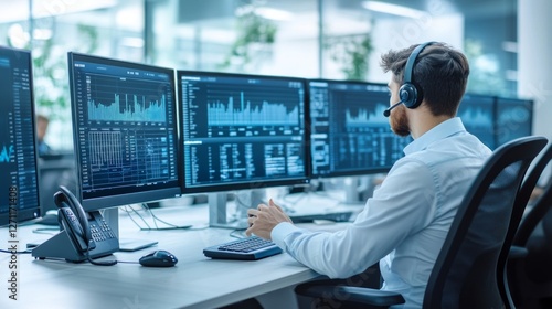 Data Analyst in Modern Business Environment. A Dedicated Professional at Work. Focused on Monitoring and Analysis
