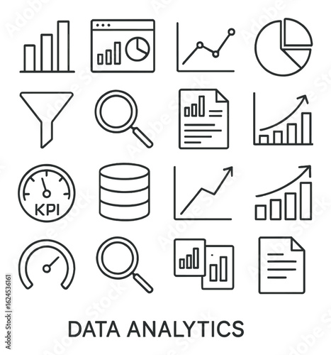 Data analytics icons set featuring graphs and charts