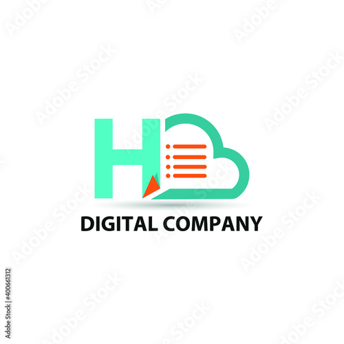 Data base storage initial letter H logo concept with cloud and document paper for technology concept vector design logotype