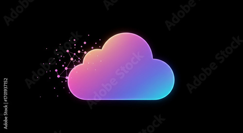 Data cloud storage icon with holographic glowing effects, isolated PNG style