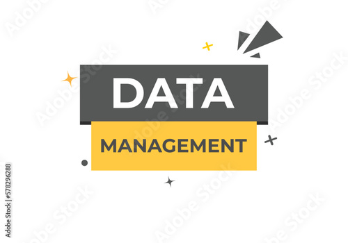 Data Management Button. Speech Bubble, Banner Label Data Management