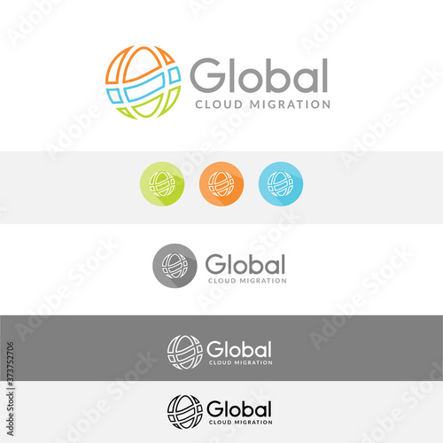 Data migration business branding kit, flat globe technology logo,