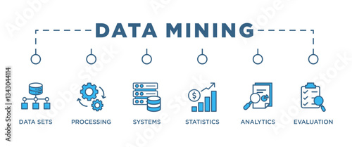 DATA MINING banner web icon vector illustration concept for product and service quality inspection with an icon of database, processing, systems, statistics, analytics, evaluation,