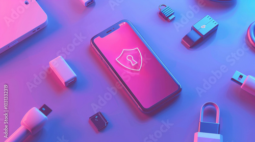 Data privacy day banner featuring smartphone with digital security elements for awareness campaigns