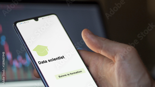 Data scientist program. A student enrolls in courses to study, to learn a new skill and pass certification. Text in French