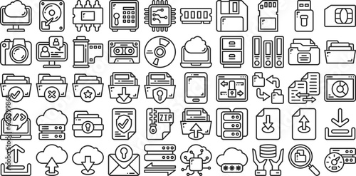 Data Storage Line Icon Set. Perfect for Graphic Design, Mobile, UI, and Web Masterpieces