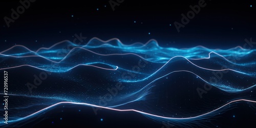 Data technology futuristic illustration, Network of dots connected by lines, blue tone