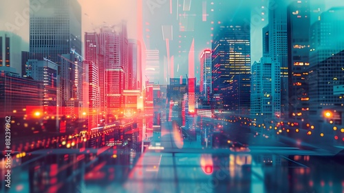 Data theme hologram drawing on city view with skyscrapers background multi exposure. Ai concept.